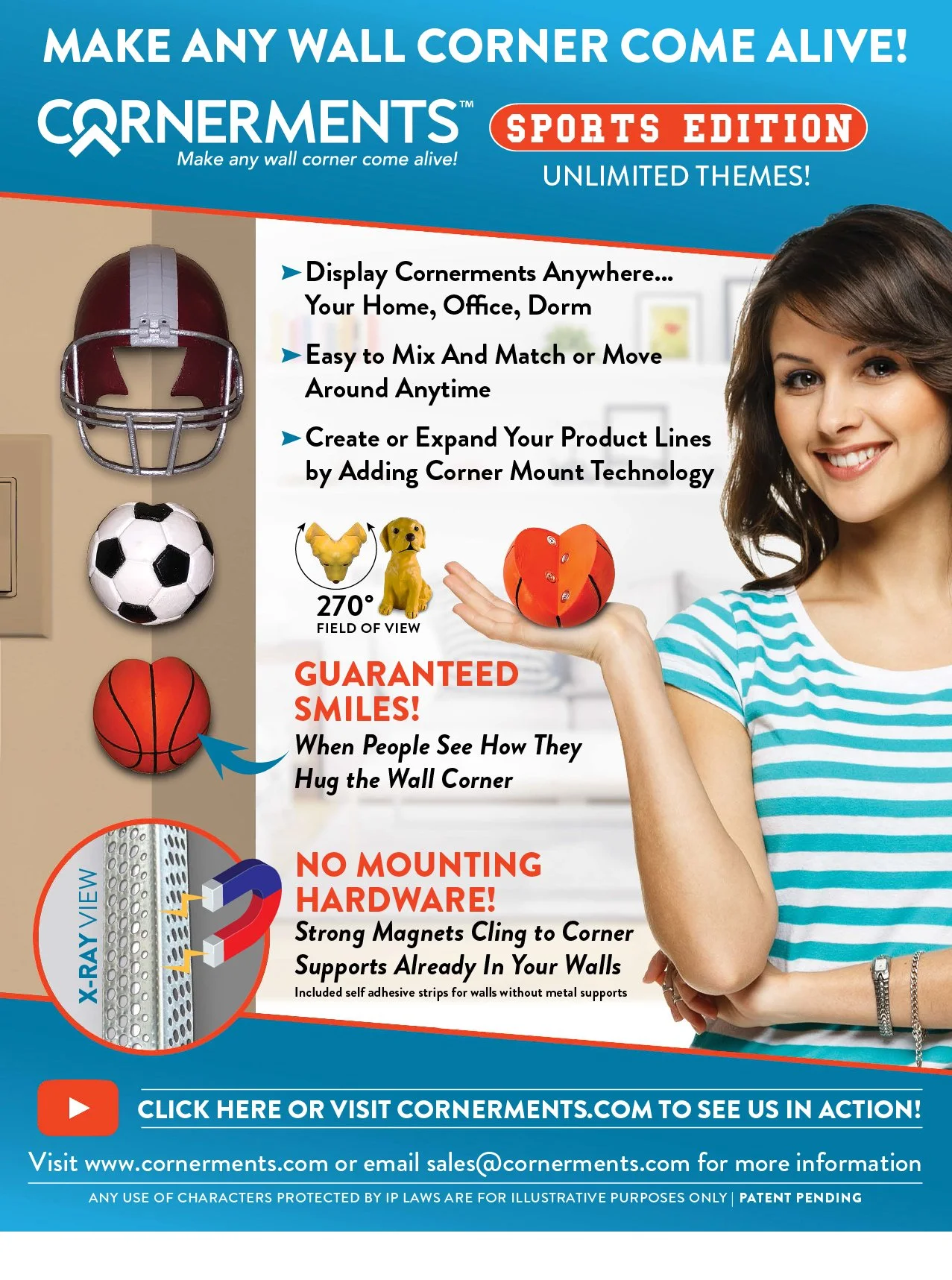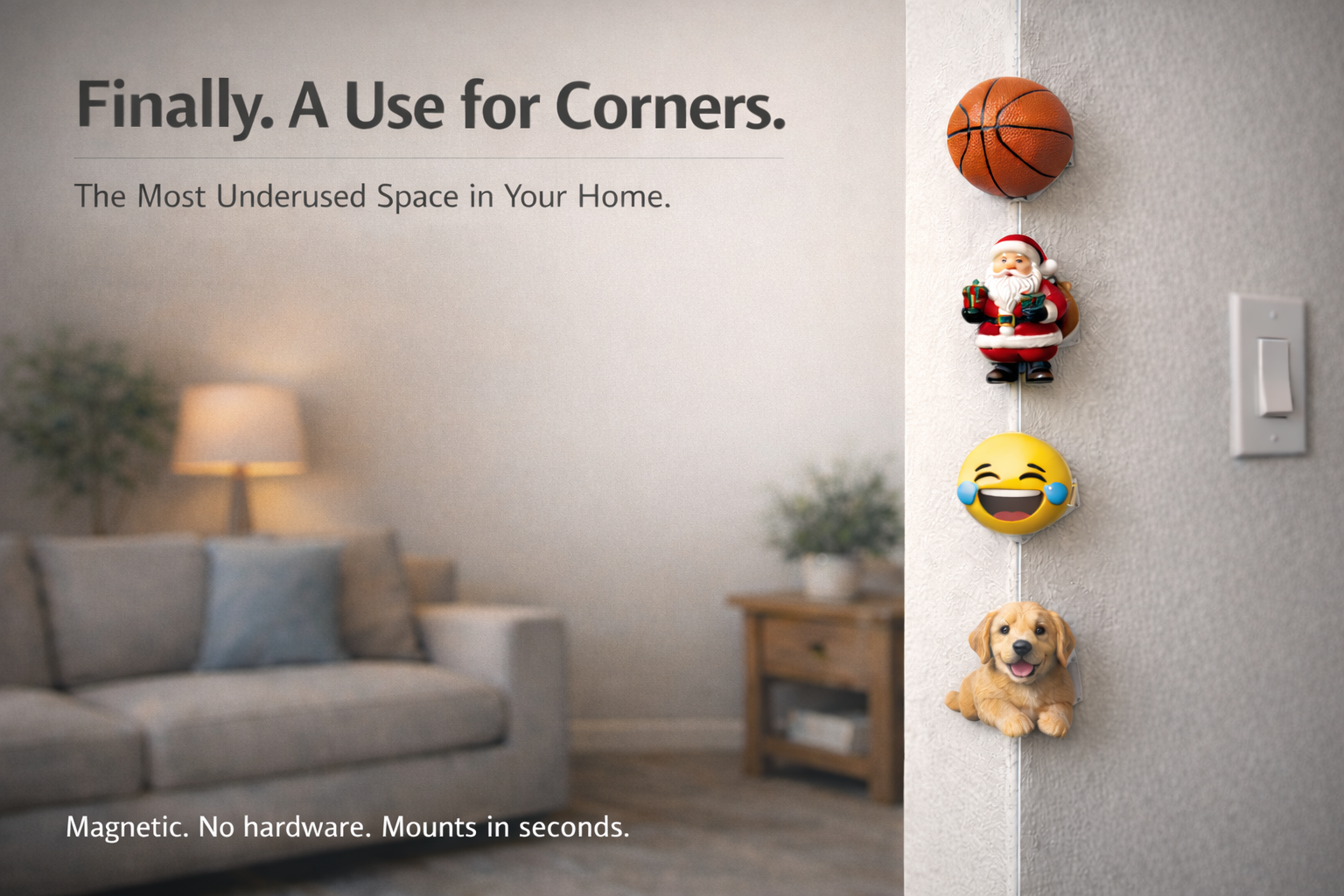 We are currently licensing the Cornerments system to select partners. If you manufacture and/or sell figurines, plush dolls, party decoration, light flashers, wireless speakers, or anything else, adapting them for corner mounting can instantly expand your catalog and product reach.